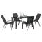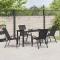 Ensemble de jardin 5 pièces en textilène noir et acierCet ensemble de salle à manger de jardin 5 pièces est fait pour des moments sympas en extérieur. Avec son look en acier noir élégant, il apporte une bonne ambiance à votre espace extérieur tout en offrant des sièges confortables pour dîner ou se détendre entre amis et en famille. Construction en acier robuste : Cet ensemble est fabriqué en acier résistant, prêt à affronter les intempéries. Le cadre solide est fait pour le jardin, parfait pour les repas. Chaises empilables : Les chaises sont conçues pour économiser de l'espace et peuvent être empilées quand vous ne les utilisez pas, ce qui libère de l'espace dans votre jardin. Finition mate : La surface mate donne du style à l'ensemble et aide à éviter les reflets, avec un look moderne. Assise confortable pour 4 : Ergonomiques, les assises sont faites pour maintenir tout le monde à l'aise, que ce soit pour manger ou se détendre. Parfait pour divers espaces extérieurs : Idéal pour les balcons, patios et jardins, cet ensemble rend n'importe quel endroit accueillant pour quatre.