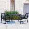 Ensemble à manger d'extérieur 3 pcs Rotin PVC NoirCet ensemble de salle à manger d'extérieur contient 1 table avec dessus de table en verre et 2 fauteuils. Cet ensemble de salle à manger au design élégant et au cadre en acier durable est un choix parfait pour votre espace de vie extérieur. L'élégance simple de cet ensemble de salle à manger rendra vos dîners quotidiens spéciaux. Comme l'ensemble de meubles est fabriqué en rotin PVC, il est résistant aux intempéries. De plus, cet ensemble de salle à manger de jardin est doté d'un cadre en acier enduit de poudre, ce qui rend la table et les chaises stables et durables. Maximum 110 kg par siège.