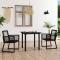 Ensemble à manger d'extérieur 3 pcs Rotin PVC NoirCet ensemble de salle à manger d'extérieur contient 1 table avec dessus de table en verre et 2 fauteuils. Cet ensemble de salle à manger au design élégant et au cadre en acier durable est un choix parfait pour votre espace de vie extérieur. L'élégance simple de cet ensemble de salle à manger rendra vos dîners quotidiens spéciaux. Comme l'ensemble de meubles est fabriqué en rotin PVC, il est résistant aux intempéries. De plus, cet ensemble de salle à manger de jardin est doté d'un cadre en acier enduit de poudre, ce qui rend la table et les chaises stables et durables. Maximum 110 kg par siège.
