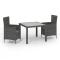 Ensemble à manger d'extérieur 3pcs coussins gris résine tresséeAvec un design élégant et un cadre en acier durable, cet ensemble de meubles de salle à manger est un choix parfait pour votre espace de vie extérieur. Cet ensemble de salle à manger de jardin dispose d'un cadre en acier enduit de poudre, ce qui rend la table et les chaises stables et durables. Grâce à la résine tressée résistante aux intempéries, les meubles d'extérieur sont faciles à nettoyer. Les coussins sont amovibles et faciles à nettoyer. De plus, les coussins épais ajoutent un confort d'assise supplémentaire. Remarque : afin de prolonger la durée de vie des meubles d'extérieur, nous vous recommandons de les protéger avec une housse imperméable. Maximum 110 kg par siège. Soyez conscient du risque de feu ouvert et d'autres sources de forte chaleur à proximité de l'appareil.
