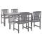 Ensemble à manger d'extérieur 5 pcs Gris Bois d'acacia solideCet ensemble de mobilier de jardin de 5 pièces se compose d'1 table et de 4 chaises et deviendra le point central de votre jardin ou patio. Cet ensemble de salle à manger en bois durable est en bois d'acacia massif, ce qui le rend robuste et facile à nettoyer. Grâce à un trou sur le dessus de table, vous pouvez facilement placer un parasol pour créer de l'ombre. Les accoudoirs et le dossier vous apporteront le plus grand confort d'assise. La livraison comprend 1 table et 4 chaises.