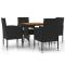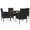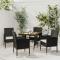Ensemble à manger d'extérieur 5 pcs Résine tressée NoirCe mobilier à dîner d'extérieur, au design élégant, est un excellent choix pour vos repas ou vos moments de détente sur votre patio ou dans votre jardin. Matériau de qualité supérieure : l'ensemble de salle à manger de jardin est conçu avec de la résine tressée imperméable, ce qui le rend facile à nettoyer, résistant à l'usure et adapté à une utilisation quotidienne à l'extérieur.Cadre robuste : doté d'un cadre en acier, la table et les chaises sont durables et stables.Chaises confortables : les chaises de jardin sont conçues dans une forme plus ergonomique pour un confort maximal. Des coussins sont inclus pour un soutien supplémentaire.Table pratique : le dessus de table est en bois d'acacia solide pour un support résistant, facile à nettoyer et à entretenir. Remarque :Afin de prolonger la durée de vie de votre mobilier d'extérieur, nous vous recommandons de le protéger avec une housse imperméable. Maximum 110 kg par siège. Soyez conscient du risque de feu ouvert et d'autres sources de forte chaleur à proximité de l'appareil.