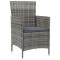 Ensemble à manger d'extérieur 5pcs coussins résine tressée grisAvec un design élégant et un cadre en acier durable, cet ensemble de meubles de salle à manger est un choix parfait pour votre espace de vie extérieur. Cet ensemble de salle à manger de jardin dispose d'un cadre en acier enduit de poudre, ce qui rend la table et les chaises stables et durables. Grâce à la résine tressée résistante aux intempéries, les meubles d'extérieur sont faciles à nettoyer. Les coussins sont amovibles et faciles à nettoyer. De plus, les coussins épais ajoutent un confort d'assise supplémentaire. Remarque : afin de prolonger la durée de vie des meubles d'extérieur, nous vous recommandons de les protéger avec une housse imperméable. Maximum 110 kg par siège. Soyez conscient du risque de feu ouvert et d'autres sources de forte chaleur à proximité de l'appareil.