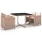Ensemble à manger d'extérieur avec coussins 5 pcs Rotin BeigeNotre ensemble de mobilier de jardin en résine tressée, au design élégant, sera un excellent choix pour les dîners en plein air ou la détente dans le jardin ou sur la terrasse ! Le mobilier de jardin est doté d'un cadre robuste en acier enduit de poudre, ce qui le rend très stable et durable. Grâce à la résine tressée résistante à l'eau, l'ensemble de salle à manger est facile à nettoyer, résistant à l'usure et adapté à une utilisation quotidienne en plein air. Le dessus de table en verre est également facile à nettoyer avec un chiffon humide. Les coussins d'assise souples noirs et épaississement rembourrés de mousse sont très confortables. Les housses de coussins en polyester ne nécessitant que peu d'entretien peuvent être facilement enlevées et lavées. L'ensemble de mobilier de jardin est facile à assembler. La livraison comprend 1 table, 4 chaises et 8 coussins. Remarque : nous recommandons de couvrir l'ensemble pendant la pluie, la neige et le gel.