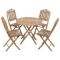 Ensemble à manger d'extérieur pliable 5pcs avec coussins BambouCet ensemble de salle à manger en bambou avec coussins a un design élégant et ajoutera une touche de charme rustique à votre repas en plein air. Fabriqué en bambou massif, l'ensemble de salle à manger de jardin est résistant et durable. Il est également résistant aux intempéries et imperméable, et facile à nettoyer avec un chiffon humide. La table et les chaises sont toutes pliables pour économiser de l'espace de stockage lorsqu'elles ne sont pas utilisées. De plus, les coussins fournis offrent du confort supplémentaire lors de la détente. Il est composé à 100 % de polyester qui a été traité pour le rendre résistant à l'eau. Chaque coussin a deux jeux de cordes pour le fixer fermement sur la chaise de salle à manger.