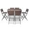 Ensemble à manger d'extérieur pliable 7pcs Acier Résine tresséeCet ensemble de bar d'extérieur en rotin sera un excellent accessoire à votre jardin ou votre patio. Il peut également être utilisé comme un ensemble de salle à manger. Cet ensemble de bar est fait de rotin synthétique résistant aux intempéries et à l'eau, ce qui le rend facile à nettoyer, résistant et adapté à un usage quotidien. La table et les chaises ont un cadre en acier enduit de poudre robuste et durable. Grâce à la construction légère, tous les articles sont faciles à déplacer. Les tabourets de bar ont des repose-pieds intégrés pour s'ajouter à leur confort d'assise. La table et les tabourets peuvent être facilement pliés lorsqu'ils ne sont pas utilisés, économisant ainsi beaucoup d'espace de rangement. La livraison comprend 1 table de bar pliante et 6 chaises de bar pliantes. L'assemblage est facile. Remarque : nous vous recommandons de couvrir l'ensemble pendant la pluie, la neige et le gel.
