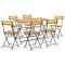 Ensemble à manger d'extérieur pliable 7pcs Bois d'acacia solideCet élégant ensemble de salle à manger en bois en plein air ajoute de l'espace et une touche de charme rustique à votre jardin, terrasse ou patio ! Cet ensemble de salle à manger de jardin est fabriqué en bois d'acacia massif, un bois dur tropical, qui est résistant aux intempéries et très durable. L'acier robuste offre également une stabilité supplémentaire. La table et les chaises sont faciles à nettoyer avec un chiffon humide et peuvent être pliées pour économiser de l'espace lorsqu'elles ne sont pas utilisées. De plus, un trou de 5 cm de diamètre au centre de la table est prêt pour un parasol. Remarque : afin de prolonger la durée de vie des meubles d'extérieur, nous vous recommandons de les protéger avec une housse imperméable. Maximum 110 kg par siège.
