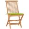 Ensemble à manger d'extérieur pliable avec coussin 3 pcs TeckCet ensemble de salle à manger d'extérieur en bois est spécialement conçu pour être le point de mire de votre jardin, terrasse ou patio. Fabriquée en bois dur de teck extrêmement durable, cette pièce de meuble en teck a été chevronnée, séchée au four puis finement poncée pour lui donner un aspect très lisse. Le bois de teck est connu pour sa résistance exceptionnelle aux intempéries, ce qui le rend bien plus adapté aux meubles de jardin que tout autre type de bois. Le bois de teck est le choix idéal si vous souhaitez acheter une pièce de meubles de jardin durable. La table de salle à manger et les chaises peuvent être repliées pour économiser de l'espace lorsqu'elles ne sont pas utilisées. Le coussin inclus est plus qu'un supplément pratique; il a également une fonction décorative.