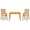Ensemble à manger de jardin 3 pcs Bois d'acacia solideCet ensemble de salle à manger de jardin en bois est un excellent choix pour les repas en plein air ou tout simplement pour se détendre dans le jardin, la cour arrière ou la terrasse. Bois d'acacia massif : le bois d'acacia massif est un matériau naturel magnifique. Le bois d'acacia un bois dur tropical, qui est dense, robuste et durable.Fonction pliable : les chaises de salle à manger d'extérieur peuvent être repliées pour gagner de la place lorsqu'elles ne sont pas utilisées.Ventilé : cet ensemble à manger de patio avec une conception à lattes peut permettre l'écoulement de l'eau, qui n'est pas facile à pourrir et a une longue durée de vie.Dessus stable : le dessus stable de la table à manger est idéal pour placer votre boisson ou toute autre nécessité dont vous avez besoin à portée de main.Surface facile à nettoyer : la surface à finition à l'huile rend ce mobilier à manger de jardin facile à nettoyer avec un chiffon humide. Bon à savoir :Pour que vos meubles d'extérieur restent beaux, nous vous recommandons de les protéger avec une housse imperméable. Maximum 110 kg par siège.
