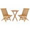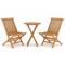 Ensemble à manger de jardin 3 pcs Bois de teck massifCet ensemble de salle à manger de jardin en bois, au design élégant, est un excellent choix pour vos repas ou vos moments de détente sur votre patio ou dans votre jardin. Bois de teck massif : le bois de teck massif est un matériau naturel magnifique. Il a été chevronné, séché au four, puis sablé finement pour lui donner une apparence très lisse. Le bois de teck est connu pour sa résistance exceptionnelle et sa résistance aux intempéries.Cadre robuste : le cadre en bois assure robustesse et stabilité.Design pliable : ces chaises et table en bois peuvent être facilement pliées lorsqu'elles ne sont pas utilisées. Remarque :Afin de prolonger la durée de vie de votre mobilier d'extérieur, nous vous recommandons de le protéger avec une housse imperméable. Maximum 110 kg par siège.
