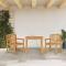 Ensemble à manger de jardin 3 pcs Bois de teck massifProfitez d'un bon repas ou d'un thé l'après-midi dans votre espace extérieur avec cet ensemble à manger de jardin en bois ! Bois de teck massif : le bois de teck massif est un matériau naturel magnifique. Il a été chevronné, séché au four, puis sablé finement pour lui donner une apparence très lisse. Le bois de teck est connu pour sa résistance exceptionnelle et sa résistance aux intempéries.Dessus de table pratique : le dessus de table robuste de la table à manger permet de placer des collations, des paniers de fruits, des objets décoratifs et d'autres objets nécessaires.Assise confortable : le dossier et les accoudoirs assurent une assise confortable à votre fauteuil de jardin.Surface facile à nettoyer : la surface lisse rend l'ensemble de meubles de jardin facile à nettoyer avec un chiffon humide. Bon à savoir :Pour que vos meubles d'extérieur restent beaux, nous vous recommandons de les protéger avec une housse imperméable. Maximum 110 kg par siège.