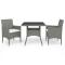 Ensemble à manger de jardin 3 pcs Gris Résine tressée et verreProfitez des réunions de famille en toute simplicité avec notre salon de jardin de 3 pièces ! Cet ensemble de salle à manger peut sans effort répondre aux besoins de vos invités tout en créant un cadre de dîner en plein air parfait ! Fabriqué en résine tressée protégée contre les rayons UV avec une structure en acier robuste recouvert de poudre, cet ensemble de salle à manger est résistant aux intempéries et robuste. Le dessus de table en verre trempé renforcé crée une surface lisse et facile à nettoyer. Chaque siège est doté d'un coussin amovible épaississement rembourré pour plus de confort pendant votre temps de détente. Toutes les housses de coussin sont amovibles avec un design à fermeture éclair. De plus, la construction légère facilite le déplacement, le réarrangement et le transport de chaque pièce. Remarque : nous vous recommandons de couvrir l'ensemble pendant la pluie, la neige et le gel. Maximum 110 kg par siège. Soyez conscient du risque de feu ouvert et d'autres sources de forte chaleur à proximité de l'appareil.