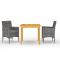 Ensemble à manger de jardin 3 pcs GrisCréez une esthétique convaincante et uniforme dans votre espace extérieur avec cet ensemble de salle à manger de jardin ! La table de salle à manger est en bois d'acacia massif avec une finition à l'huile, ce qui la rend stable, durable et facile à entretenir. Dotées d'un cadre en acier enduit de poudre recouvert de résine tressée résistante aux intempéries, ces chaises sont robustes et faciles à nettoyer. Conçue avec un dossier et un accoudoir incurvés, la chaise à dîner a une forme plus ergonomique pour un confort maximal. Chaque siège est doté d'un coussin rembourré amovible pour ajouter du confort pendant votre temps de détente. Remarque importante : Nous vous recommandons de couvrir l'ensemble de salle à manger pendant la pluie, la neige et le gel pour une utilisation durable. Maximum 110 kg par siège. Soyez conscient du risque de feux ouverts et d'autres sources de forte chaleur à proximité du produit.