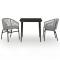 Ensemble à manger de jardin 3 pcs GrisCréez une esthétique convaincante et uniforme dans votre espace extérieur avec cet ensemble de salle à manger de jardin ! Cet ensemble de repas de jardin est fait de cadre en acier enduit de poudre, ce qui le rend robuste et stable pour une utilisation quotidienne à l'extérieur. Le dessus de table en verre lisse est facile à nettoyer avec un chiffon humide et est parfait pour placer des repas, des boissons et d'autres objets décoratifs. Les chaises de patio sont en rotin PVC, ce qui les rend durables et résistantes aux intempéries et aux rayons UV. De plus, chaque siège est livré avec un coussin bien rembourré amovible pour plus de confort pendant votre temps de détente. Remarque : afin de prolonger la durée de vie des meubles d'extérieur, nous vous recommandons de les protéger avec une housse imperméable.