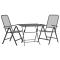 Ensemble à manger de jardin 3 pcs Maille Métal AnthraciteAsseyez-vous et savourez votre délicieux dîner en plein air ou n'importe quel repas avec cet ensemble de salle à manger de jardin. Matériau de qualité supérieure : le métal déployé est un type de tôle qui a été coupé et étiré pour former un motif régulier d'un matériau semblable à un treillis métallique. Il est plus solide qu'un poids équivalent de treillis métallique.Finition par dépôt électrolytique : la finition par dépôt électrolytique rend le métal résistant aux intempéries et à la corrosion. Par conséquent, l'ensemble de salle à manger de patio est toujours durable pour une utilisation à l'extérieur.Dossier réglable : ces chaises à dîner ont des dossiers qui s'inclinent dans 7 réglages, de sorte que vous puissiez toujours trouver la position la plus confortable.Design pliable : grâce au design pliable, les chaises et la table de patio peuvent être pliées pour économiser de l'espace lorsqu'elles ne sont pas utilisées. Remarque :Afin de prolonger la durée de vie de votre mobilier d'extérieur, nous vous recommandons de le protéger avec une housse imperméable.