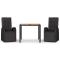 Ensemble à manger de jardin 3 pcs Noir Poly rotin et acaciaCet ensemble de salle à manger de jardin, au design élégant et contemporain, sera un excellent choix pour manger ou vous détendre dans le jardin. Matériau durable : la résine tressée, également connue sous le nom de rotin poly, résiste aux intempéries et est facile à nettoyer. Elle reste belle à l'extérieur pendant une longue période. Elle offre une excellente qualité, commodité et un aspect esthétique.Cadre stable : le cadre en acier enduit de poudre de l'ensemble de meubles de jardin garantit la robustesse et la stabilité.Fonction d'inclinaison : les chaises de jardin de cet ensemble de salle à manger d'extérieur sont spécialement conçues avec une fonction d'inclinaison afin que vous puissiez régler le dossier et le repose-pied selon votre confort.Table pratique : le dessus robuste est parfait pour garder à portée de main votre téléphone, livre, collation ou boisson.Confort supplémentaire : le coussin bien rembourré de l'ensemble de salle à manger de patio offre un confort ultime pendant vos moments de détente. Remarque :Pour que vos meubles d'extérieur restent beaux, nous vous recommandons de les protéger avec une housse imperméable. Bon à savoir :Pour faciliter au maximum le montage, chaque produit est livré avec des instructions. Maximum 110 kg par siège. Soyez conscient du risque de feu ouvert et d'autres sources de forte chaleur à proximité de l'appareil.