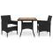 Ensemble à manger de jardin 3 pcs Noir Résine tressée et acaciaProfitez des réunions de famille en toute simplicité avec notre salon de jardin de 3 pièces ! Cet ensemble de salle à manger peut sans effort répondre aux besoins de vos invités tout en créant un cadre de dîner en plein air parfait ! Cet ensemble de salle à manger est fait d'un cadre en acier renforcé recouvert d'une élégante résine tressée tissée à la main résistante aux intempéries, qui assure le soutien fort et peut être utilisé toute l'année. Le dessus de table est fabriqué en bois d'acacia massif de qualité, un bois dur tropical, résistant aux intempéries et durable. L'artisanat et les beaux grains de bois rendent chaque meuble unique et légèrement différent l'un de l'autre. Chaque siège est livré avec un coussin amovible bien rembourré pour plus de confort et de soutien pendant votre temps de détente. Toutes les housses de coussin sont amovibles avec un design à fermeture éclair. De plus, la construction légère rend chaque pièce facile à déplacer, à réorganiser et à transporter. Remarque : nous vous recommandons de couvrir l'ensemble pendant la pluie, la neige et le gel. Maximum 110 kg par siège. Soyez conscient du risque de feux ouverts et d'autres sources de forte chaleur à proximité du produit.