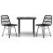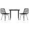 Ensemble à manger de jardin 3 pcs Noir Résine tresséeCréez une esthétique convaincante et uniforme dans votre espace extérieur avec cet ensemble de salle à manger de jardin ! Matériau durable : la résine tressée, également connue sous le nom de rotin poly, résiste aux intempéries et est facile à nettoyer. Elle reste belle à l'extérieur pendant une longue période. Elle offre une excellente qualité, commodité et un aspect esthétique.Cadre robuste et stable : les cadres en acier rendent l'ensemble de terrasse robuste et stable pour une utilisation quotidienne à l'extérieur.Dessus de table pratique : le dessus lisse de la table de salle à manger est en verre trempé, facile à nettoyer avec un chiffon humide. De plus, le dessus robuste est parfait pour placer des repas, des boissons et d'autres objets décoratifs.Assise confortable : la chaise de salle à manger est conçue avec un dossier pour vous offrir une expérience d'assise confortable.Bouchons de pieds pratiques : l'ensemble de bistro est livré avec des bouchons de pieds qui l'aident à se tenir plus fermement au sol. Remarque :Afin de prolonger la durée de vie de votre mobilier d'extérieur, nous vous recommandons de le protéger avec une housse imperméable.Chaque produit est livré avec un manuel de montage dans la boîte pour un montage facile. Maximum 110 kg par siège.