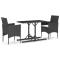 Ensemble à manger de jardin 3 pcs NoirCréez une esthétique convaincante et uniforme dans votre espace extérieur avec cet ensemble de salle à manger de jardin ! Doté d'un cadre en acier enduit de poudre recouvert de résine tressée résistante aux intempéries, cet ensemble de salle à manger est robuste et facile à nettoyer. Le dessus de table en verre ajoute une touche somptueuse à votre espace extérieur. Conçue avec un dossier et un accoudoir incurvés, la chaise de salle à manger a une forme plus ergonomique pour un confort maximal. Chaque siège est livré avec un coussin amovible bien rembourré pour ajouter du confort pendant votre temps de détente. Remarque : afin de prolonger la durée de vie des meubles d'extérieur, nous vous recommandons de les protéger avec une housse imperméable. Maximum 110 kg par siège. Soyez conscient du risque de feu ouvert et d'autres sources de forte chaleur à proximité de l'appareil.