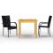 Ensemble à manger de jardin 3 pcs NoirCréez une esthétique convaincante et uniforme dans votre espace extérieur avec cet ensemble de salle à manger de jardin ! La table de salle à manger est en bois d'acacia massif avec une finition à l'huile, ce qui la rend stable, durable et facile à entretenir. Dotées d'un cadre en acier enduit de poudre recouvert de résine tressée résistante aux intempéries, ces chaises sont robustes et faciles à nettoyer. Les chaises d'extérieur sont légères et peuvent être empilées pour gagner de la place lorsqu'elles ne sont pas utilisées. Remarque importante : Nous vous recommandons de couvrir l'ensemble de salle à manger pendant la pluie, la neige et le gel pour une utilisation durable. Maximum 110 kg par siège.