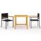 Ensemble à manger de jardin 3 pcs NoirCréez une esthétique convaincante et uniforme dans votre espace extérieur avec cet ensemble de salle à manger de jardin ! La table de salle à manger est en bois d'acacia massif avec une finition à l'huile, ce qui la rend stable, durable et facile à entretenir. Dotées d'un cadre en acier enduit de poudre recouvert de résine tressée résistante aux intempéries, ces chaises sont robustes et faciles à nettoyer. Remarque importante : Nous vous recommandons de couvrir l'ensemble de salle à manger pendant la pluie, la neige et le gel pour une utilisation durable.