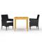 Ensemble à manger de jardin 3 pcs NoirCréez une esthétique convaincante et uniforme dans votre espace extérieur avec cet ensemble de salle à manger de jardin ! La table de salle à manger est en bois d'acacia massif avec une finition à l'huile, ce qui la rend stable, durable et facile à entretenir. Dotées d'un cadre en acier enduit de poudre recouvert de résine tressée résistante aux intempéries, ces chaises sont robustes et faciles à nettoyer. Conçue avec un dossier et un accoudoir incurvés, la chaise à dîner a une forme plus ergonomique pour un confort maximal. Chaque siège est doté d'un coussin rembourré amovible pour ajouter du confort pendant votre temps de détente. Remarque importante : Nous vous recommandons de couvrir l'ensemble de salle à manger pendant la pluie, la neige et le gel pour une utilisation durable. Maximum 110 kg par siège. Soyez conscient du risque de feux ouverts et d'autres sources de forte chaleur à proximité du produit.