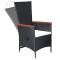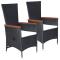 Ensemble à manger de jardin 3 pcs NoirCréez une esthétique convaincante et uniforme dans votre espace extérieur avec cet ensemble de salle à manger de jardin ! La table de salle à manger est fabriquée en bois d'acacia massif avec une finition à l'huile, ce qui la rend stable, durable et facile à entretenir. Dotées d'un cadre en acier enduit de poudre recouvert de résine tressée résistante aux intempéries, ces chaises de salle à manger sont robustes et faciles à nettoyer. Les chaises inclinables vous offrent tout le confort nécessaire. Le dossier s'inclinera en tirant sur le bouton situé au côté. Grâce à leur construction légère, elles sont faciles à déplacer. Elles sont également livrées avec des coussins d'assise hautement confortables et bien rembourrés pour un confort suprême. Les housses en polyester nécessitant peu d'entretien peuvent également être enlevées et lavées. Remarque importante : Nous vous recommandons de couvrir l'ensemble de salle à manger pendant la pluie, la neige et le gel pour une utilisation durable. Maximum 110 kg par siège. Soyez conscient du risque de feu ouvert et d'autres sources de forte chaleur à proximité de l'appareil.