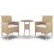 Ensemble à manger de jardin 3 pcs Résine tressée BeigeCet ensemble de salle à manger de jardin, au design élégant, est un excellent choix pour vos repas ou vos moments de détente sur votre patio ou dans votre jardin. Cadre solide : dotés d'un cadre en acier enduit de poudre recouvert de résine tressée résistante aux intempéries et protégé contre les UV, la table et les chaises sont durables et stables.Chaises confortables : les chaises de jardin sont conçues dans une forme plus ergonomique pour un confort maximal. Des coussins sont inclus pour un soutien supplémentaire.Table pratique : le dessus de table est en verre trempé pour un support solide, facile à nettoyer et à entretenir. Remarque :Afin de prolonger la durée de vie de votre mobilier d'extérieur, nous vous recommandons de le protéger avec une housse imperméable. Maximum 110 kg par siège. Soyez conscient du risque de feu ouvert et d'autres sources de forte chaleur à proximité de l'appareil.