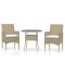 Ensemble à manger de jardin 3 pcs Résine tressée BeigeProfitez d'un bon repas ou d'un thé l'après-midi dans votre espace extérieur avec cet ensemble de salle à manger de jardin ! Ayant un design élégant, il deviendra le point central de votre jardin et de votre terrasse ! Avec un cadre en acier enduit de poudre enveloppé en résine tressée, cet ensemble repas d'extérieur est durable. Le dessus de table est en verre trempé, ce qui le rend facile à nettoyer. De plus, les coussins bien rembourrés offrent un confort ultime pendant votre temps d'assise. Remarque : afin de prolonger la durée de vie des meubles d'extérieur, nous vous recommandons de les protéger avec une housse imperméable. Maximum 110 kg par siège. Soyez conscient du risque de feu ouvert et d'autres sources de forte chaleur à proximité de l'appareil.