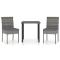 Ensemble à manger de jardin 3 pcs Résine tressée GrisCet ensemble de salle à manger de jardin est conçu pour être le point de mire de votre jardin ou patio ! Le cadre en acier rend cette table et ces chaises solides et stables. Comme l'ensemble est également léger, tous les articles sont faciles à déplacer et adaptés pour une utilisation à l'extérieur. Grâce à la résine tressée résistante aux intempéries et à l'eau, le mobilier d'extérieur est facile à nettoyer et durable. Les coussins de siège bien rembourrés et amovibles offrent un confort supplémentaire. Remarque : nous vous recommandons de couvrir l'ensemble pendant la pluie, la neige et le gel. Maximum 110 kg par siège. Soyez conscient du risque de feu ouvert et d'autres sources de forte chaleur à proximité de l'appareil.