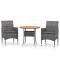 Ensemble à manger de jardin 3 pcs Résine tressée GrisProfitez d'un bon repas ou d'un thé l'après-midi dans votre espace extérieur avec cet ensemble de salle à manger de jardin ! Ayant un design élégant, il deviendra le point central de votre jardin et de votre terrasse ! Avec un cadre en acier enduit de poudre enveloppé en résine tressée, cet ensemble repas d'extérieur est durable. Le dessus de table est fait de bois d'acacia massif, un bois franc avec des grains denses. De plus, les coussins bien rembourrés offrent un confort ultime pendant votre temps d'assise. Remarque : afin de prolonger la durée de vie des meubles d'extérieur, nous vous recommandons de les protéger avec une housse imperméable. Maximum 110 kg par siège. Soyez conscient du risque de feu ouvert et d'autres sources de forte chaleur à proximité de l'appareil.