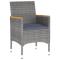 Ensemble à manger de jardin 3 pcs Résine tressée GrisCet ensemble de salle à manger de jardin, au design élégant, est un excellent choix pour vos repas ou vos moments de détente sur votre patio ou dans votre jardin. Cadre solide : dotés d'un cadre en acier enduit de poudre recouvert de résine tressée résistante aux intempéries et protégé contre les UV, la table et les chaises sont durables et stables.Chaises confortables : les chaises de jardin sont conçues dans une forme plus ergonomique pour un confort maximal. Des coussins sont inclus pour un soutien supplémentaire.Table robuste : le dessus de table est en bois d'acacia massif, un matériau naturel magnifique. Traitez la surface avec de l'huile, de la cire, de la laque ou une finition vitrée pour obtenir une surface plus résistante et un nettoyage facile. Le bois d'acacia est un bois dur tropical, qui est dense, robuste et durable. Remarque :Afin de prolonger la durée de vie de votre mobilier d'extérieur, nous vous recommandons de le protéger avec une housse imperméable.