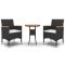 Ensemble à manger de jardin 3 pcs Résine tressée NoirCet ensemble de salle à manger de jardin, au design élégant, est un excellent choix pour vos repas ou vos moments de détente sur votre patio ou dans votre jardin. Cadre solide : dotés d'un cadre en acier enduit de poudre recouvert de résine tressée résistante aux intempéries et protégé contre les UV, la table et les chaises sont durables et stables.Chaises confortables : les chaises de jardin sont conçues dans une forme plus ergonomique pour un confort maximal. Des coussins sont inclus pour un soutien supplémentaire.Table pratique : le dessus de table est en verre trempé pour un support solide, facile à nettoyer et à entretenir. Remarque :Afin de prolonger la durée de vie de votre mobilier d'extérieur, nous vous recommandons de le protéger avec une housse imperméable. Maximum 110 kg par siège. Soyez conscient du risque de feu ouvert et d'autres sources de forte chaleur à proximité de l'appareil.