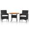 Ensemble à manger de jardin 3 pcs Résine tressée NoirProfitez d'un bon repas ou d'un thé l'après-midi dans votre espace extérieur avec cet ensemble de salle à manger de jardin ! Ayant un design élégant, il deviendra le point central de votre jardin et de votre terrasse ! Avec un cadre en acier enduit de poudre enveloppé en résine tressée, cet ensemble repas d'extérieur est durable. Le dessus de table est fait de bois d'acacia massif, un bois franc avec des grains denses. De plus, les coussins bien rembourrés offrent un confort ultime pendant votre temps d'assise. Remarque : afin de prolonger la durée de vie des meubles d'extérieur, nous vous recommandons de les protéger avec une housse imperméable. Maximum 110 kg par siège. Soyez conscient du risque de feu ouvert et d'autres sources de forte chaleur à proximité de l'appareil.