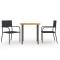 Ensemble à manger de jardin 3 pcs Résine tressée NoirCréez une esthétique convaincante et uniforme dans votre espace extérieur avec cet ensemble de salle à manger de jardin ! La table de salle à manger est fabriquée en bois d'acacia massif et en acier durable, ce qui la rend robuste et stable. La surface à finition à l'huile la rend également adaptée pour une utilisation en extérieur. Dotées d'un cadre en acier recouvert de résine tressée résistante aux intempéries, les chaises sont robustes et faciles à nettoyer. Ces chaises de jardin peuvent être empilées pour économiser de l'espace lorsqu'elles ne sont pas utilisées. Remarque : afin de prolonger la durée de vie des meubles d'extérieur, nous vous recommandons de les protéger avec une housse imperméable. Maximum 110 kg par siège.