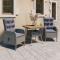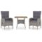 Ensemble à manger de jardin 3 pcs Résine tressée et acacia GrisCet élégant ensemble de salle à manger de jardin est destiné à être le point de mire de votre jardin ou patio ! C'est un excellent choix pour manger en plein air ou vous détendre dans les espaces extérieurs ! Les cadres en acier enduit de poudre rendent la table et les chaises solides. Grâce à leurs constructions légères, tous les articles sont faciles à déplacer. La résine tressée résistante aux intempéries et le dessus en bois d'acacia avec une finition à l'huile sont faciles à nettoyer avec un chiffon humide. Les fauteuils sont conçus avec des dossiers incurvés et des accoudoirs pour un confort maximal. Les coussins sont inclus pour un soutien supplémentaire et la housse à fermeture éclair est amovible pour faciliter le lavage. Maximum 110 kg par siège. Soyez conscient du risque de feux ouverts et d'autres sources de forte chaleur à proximité du produit.