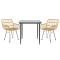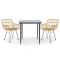 Ensemble à manger de jardin 3 pcs Résine tresséeCréez une esthétique convaincante et uniforme dans votre espace extérieur avec cet ensemble de salle à manger de jardin ! Matériau durable : la résine tressée, également connue sous le nom de rotin poly, résiste aux intempéries et est facile à nettoyer. Elle reste belle à l'extérieur pendant une longue période. Elle offre une excellente qualité, commodité et un aspect esthétique.Cadre robuste et stable : les cadres en acier rendent l'ensemble de terrasse robuste et stable pour une utilisation quotidienne à l'extérieur.Dessus de table pratique : le dessus lisse de la table de salle à manger est en verre trempé, facile à nettoyer avec un chiffon humide. De plus, le dessus robuste est parfait pour placer des repas, des boissons et d'autres objets décoratifs.Assise confortable : la chaise de salle à manger est conçue avec un dossier et des accoudoirs pour vous offrir une expérience d'assise confortable.Bouchons de pieds pratiques : l'ensemble de bistro est livré avec des bouchons de pieds qui l'aident à se tenir plus fermement au sol. Remarque :Afin de prolonger la durée de vie de votre mobilier d'extérieur, nous vous recommandons de le protéger avec une housse imperméable.Chaque produit est livré avec un manuel de montage dans la boîte pour un montage facile. Maximum 110 kg par siège.