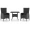 Ensemble à manger de jardin 3 pcs Résine tressée et verre NoirCet élégant ensemble de salle à manger de jardin est destiné à être le point de mire de votre jardin ou patio ! C'est un excellent choix pour manger en plein air ou vous détendre dans les espaces extérieurs ! Les cadres en acier enduit de poudre rendent la table et les chaises solides. Grâce à leurs constructions légères, tous les articles sont faciles à déplacer. La résine tressée résistante aux intempéries et le dessus en verre sont faciles à nettoyer avec un chiffon humide. Les fauteuils sont conçus avec des dossiers incurvés et des accoudoirs pour un confort maximal. Les coussins sont inclus pour un soutien supplémentaire et la housse à fermeture éclair est amovible pour faciliter le lavage. Maximum 110 kg par siège. Soyez conscient du risque de feu ouvert et d'autres sources de forte chaleur à proximité de l'appareil.