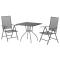 Ensemble à manger de jardin 3 pcs anthracite acierCet ensemble de salle à manger de jardin tendance, au design élégant et contemporain, est un choix parfait pour vous détendre dans votre jardin. Matériau robuste : l'acier est un matériau exceptionnellement dur et solide. Il offre robustesse et stabilité. Le revêtement par poudre et le revêtement électronique de l'acier créent une couche protectrice contre l'usure et la corrosion.Cadre stable : le cadre en acier enduit de poudre et e-coated assure la robustesse et la stabilité de l'ensemble de salle à manger.Fonction réglable et pliable : les dossiers des chaises de salle à manger sont réglables en 6 positions selon votre confort. Vous pouvez les replier pour économiser de l'espace lorsqu'ils ne sont pas utilisés.Table pratique : le dessus robuste de la table à manger est parfait pour placer des repas, des boissons et d'autres objets décoratifs.Pieds élégants : les pieds incurvés de la table à manger de jardin créent un air d'élégance tout en assurant la stabilité.Design en maille : l'ensemble de salle à manger d'extérieur avec un design en maille a un aspect simple et intemporel et convient aux balcons, porches, jardins, terrasses, etc. Remarque :Pour que vos meubles d'extérieur restent beaux, nous vous recommandons de les protéger avec une housse imperméable. Maximum 110 kg par siège.