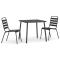 Ensemble à manger de jardin 3 pcs anthracite acierCet ensemble de salle à manger de jardin tendance, au design élégant et contemporain, est un choix parfait pour vous détendre dans votre jardin. Matériau robuste : l'acier est un matériau exceptionnellement dur et solide. Il offre robustesse et stabilité. Le revêtement par poudre et le revêtement électronique de l'acier créent une couche protectrice contre l'usure et la corrosion.Cadre stable : le cadre en acier enduit de poudre et e-coated assure la robustesse et la stabilité de l'ensemble de salle à manger.Fonction empilable : les chaises de salle à manger sont empilables pour économiser de l'espace lorsqu'elles ne sont pas utilisées.Table pratique : le dessus robuste de la table à manger est parfait pour placer des repas, des boissons et d'autres objets décoratifs.Design à lattes : la table à manger de jardin avec un design à lattes est simple et intemporelle et convient aux balcons, porches, jardins, terrasses, etc. Remarque :Pour que vos meubles d'extérieur restent beaux, nous vous recommandons de les protéger avec une housse imperméable. Maximum 110 kg par siège.
