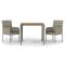 Ensemble à manger de jardin 3 pcs coussins gris résine tresséeCet ensemble de salle à manger de jardin tendance, au design élégant et contemporain, est un excellent choix pour manger ou vous détendre dans votre jardin. Matériau résistant aux intempéries : la résine tressée, également connue sous le nom de rotin poly, résiste aux intempéries et est facile à nettoyer. Elle reste belle à l'extérieur pendant une longue période. Elle offre une excellente qualité, commodité et un aspect esthétique.Cadre robuste : les cadres en acier enduit de poudre rendent l'ensemble de salle à manger d'extérieur robuste et stable pour une utilisation quotidienne à l'extérieur.Dessus de table pratique : le dessus de table en bois d'acacia massif est parfait pour placer des boissons, des aliments et des décorations. Il a une belle apparence et est facile à nettoyer.Conception modulaire : l'ensemble de salle à manger de jardin est flexible et facile à déplacer, vous pouvez donc le combiner avec d'autres segments modulaires dans la boutique en ligne pour créer vos propres configurations d'ensemble de salle à manger de jardin !Expérience d'assise confortable : le dossier ajoute un confort d'assise supplémentaire à la chaise de jardin. De plus, les coussins bien rembourrés vous permettent de vous asseoir confortablement. Bon à savoir :Pour faciliter au maximum le montage, chaque produit est livré avec des instructions. Remarque :Pour que vos meubles d'extérieur restent beaux, nous vous recommandons de les protéger avec une housse imperméable. Maximum 110 kg par siège.