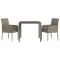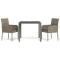 Ensemble à manger de jardin 3 pcs coussins gris résine tresséeCet ensemble de salle à manger de jardin tendance, au design élégant et contemporain, est un excellent choix pour manger ou vous détendre dans votre jardin. Matériau résistant aux intempéries : la résine tressée, également connue sous le nom de rotin poly, résiste aux intempéries et est facile à nettoyer. Elle reste belle à l'extérieur pendant une longue période. Elle offre une excellente qualité, commodité et un aspect esthétique.Cadre robuste : les cadres en acier enduit de poudre rendent l'ensemble de salle à manger d'extérieur robuste et stable pour une utilisation quotidienne à l'extérieur.Dessus de table pratique : le dessus lisse de la table de jardin est en verre trempé, facile à nettoyer avec un chiffon humide. De plus, le dessus robuste est parfait pour placer des repas, des boissons et d'autres objets décoratifs.Conception modulaire : l'ensemble de salle à manger de jardin est flexible et facile à déplacer, vous pouvez donc le combiner avec d'autres segments modulaires dans la boutique en ligne pour créer vos propres configurations d'ensemble de salle à manger de jardin !Expérience d'assise confortable : le dossier ajoute un confort d'assise supplémentaire à la chaise de jardin. De plus, les coussins bien rembourrés vous permettent de vous asseoir confortablement. Bon à savoir :Pour faciliter au maximum le montage, chaque produit est livré avec des instructions. Remarque :Pour que vos meubles d'extérieur restent beaux, nous vous recommandons de les protéger avec une housse imperméable. Maximum 110 kg par siège.
