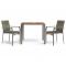 Ensemble à manger de jardin 3 pcs coussins gris résine tresséeCet ensemble de salle à manger de jardin tendance, au design élégant et contemporain, est un excellent choix pour manger ou vous détendre dans votre jardin. Matériau résistant aux intempéries : la résine tressée, également connue sous le nom de rotin poly, résiste aux intempéries et est facile à nettoyer. Elle reste belle à l'extérieur pendant une longue période. Elle offre une excellente qualité, commodité et un aspect esthétique.Cadre robuste : les cadres en acier enduit de poudre rendent l'ensemble de salle à manger d'extérieur robuste et stable pour une utilisation quotidienne à l'extérieur.Dessus de table pratique : le dessus de table en bois d'acacia massif est parfait pour placer des boissons, des aliments et des décorations. Il a une belle apparence et est facile à nettoyer.Conception modulaire : l'ensemble de salle à manger de jardin est flexible et facile à déplacer, vous pouvez donc le combiner avec d'autres segments modulaires dans la boutique en ligne pour créer vos propres configurations d'ensemble de salle à manger de jardin !Expérience d'assise confortable : le dossier ajoute un confort d'assise supplémentaire à la chaise de jardin. De plus, les coussins bien rembourrés vous permettent de vous asseoir confortablement. Bon à savoir :Pour faciliter au maximum le montage, chaque produit est livré avec des instructions. Remarque :Pour que vos meubles d'extérieur restent beaux, nous vous recommandons de les protéger avec une housse imperméable. Maximum 110 kg par siège.