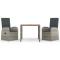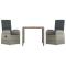 Ensemble à manger de jardin 3 pcs coussins gris résine tresséeCet ensemble de salle à manger de jardin tendance, au design élégant et contemporain, est un excellent choix pour manger ou vous détendre dans votre jardin. Matériau résistant aux intempéries : la résine tressée, également connue sous le nom de rotin poly, résiste aux intempéries et est facile à nettoyer. Elle reste belle à l'extérieur pendant une longue période. Elle offre une excellente qualité, commodité et un aspect esthétique.Cadre robuste : les cadres en acier enduit de poudre rendent l'ensemble de salle à manger d'extérieur robuste et stable pour une utilisation quotidienne à l'extérieur.Dessus de table pratique : le dessus de table robuste est parfait pour placer des repas, des boissons et d'autres objets décoratifs.Conception modulaire : l'ensemble de salle à manger de jardin est flexible et facile à déplacer, vous pouvez donc le combiner avec d'autres segments modulaires dans la boutique en ligne pour créer vos propres configurations d'ensemble de salle à manger de jardin !Fonction d'inclinaison : les chaises de jardin sont spécialement conçues avec une fonction d'inclinaison afin que vous puissiez régler le dossier selon votre confort.Expérience d'assise confortable : le dossier ajoute un confort d'assise supplémentaire à la chaise de jardin. De plus, les coussins bien rembourrés vous permettent de vous asseoir confortablement. Bon à savoir :Pour faciliter au maximum le montage, chaque produit est livré avec des instructions. Remarque :Pour que vos meubles d'extérieur restent beaux, nous vous recommandons de les protéger avec une housse imperméable. Maximum 110 kg par siège. Soyez conscient du risque de feux ouverts et d'autres sources de forte chaleur à proximité du produit.