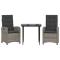 Ensemble à manger de jardin 3 pcs coussins gris résine tresséeCet ensemble de salle à manger de jardin est un excellent choix pour les repas en plein air ou pour vous détendre dans le jardin, dans l'arrière-cour ou sur la terrasse. Matériau durable : la résine tressée, également connue sous le nom de poly rotin, est un matériau synthétique solide et nécessitant peu d'entretien qui ressemble au rotin naturel. Il est léger, facile à nettoyer et couramment utilisé pour les meubles d'extérieur en raison de sa durabilité et de ses propriétés de résistance aux intempéries.Dossier réglable : ce siège de jardin est doté d'une poignée. Vous pouvez régler le dossier dans n'importe quelle position en tirant sur la poignée et le remettre rapidement dans sa position initiale.Expérience d'assise confortable : ce mobilier d'extérieur, doté de coussins épais, offre une expérience d'assise confortable.Housse amovible et lavable : ces coussins de siège sont dotés de housses amovibles pour un lavage et un entretien faciles. Les coussins de dossier ont un rabat à l'arrière pour une fixation facile aux dossiers.Dessus en verre : le dessus de la table d'extérieur est fabriqué en verre trempé solide et durable, ce qui le rend facile à nettoyer avec un chiffon humide et ajoute une touche d'élégance à votre espace extérieur. Bon à savoir :Pour que vos meubles d'extérieur restent beaux, nous vous recommandons de les protéger avec une housse imperméable. Maximum 110 kg par siège. Soyez conscient du risque de feu ouvert et d'autres sources de forte chaleur à proximité de l'appareil.