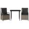 Ensemble à manger de jardin 3 pcs coussins gris résine tresséeCet ensemble de salle à manger de jardin est un excellent choix pour les repas en plein air ou pour vous détendre dans le jardin, dans l'arrière-cour ou sur la terrasse. Matériau durable : la résine tressée, également connue sous le nom de poly rotin, est un matériau synthétique solide et nécessitant peu d'entretien qui ressemble au rotin naturel. Il est léger, facile à nettoyer et couramment utilisé pour les meubles d'extérieur en raison de sa durabilité et de ses propriétés de résistance aux intempéries.Dossier réglable : ce siège de jardin est doté d'une poignée. Vous pouvez régler le dossier dans n'importe quelle position en tirant sur la poignée et le remettre rapidement dans sa position initiale.Expérience d'assise confortable : ce mobilier d'extérieur, doté de coussins épais, offre une expérience d'assise confortable.Housse amovible et lavable : le coussin de siège est doté d'une housse amovible pour un lavage et un entretien faciles.Dessus en verre : le dessus de la table d'extérieur est fabriqué en verre trempé solide et durable, ce qui le rend facile à nettoyer avec un chiffon humide et ajoute une touche d'élégance à votre espace extérieur. Bon à savoir :Pour que vos meubles d'extérieur restent beaux, nous vous recommandons de les protéger avec une housse imperméable. Maximum 110 kg par siège. Soyez conscient du risque de feu ouvert et d'autres sources de forte chaleur à proximité de l'appareil.