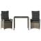 Ensemble à manger de jardin 3 pcs coussins gris résine tresséeCet ensemble de salle à manger de jardin est un excellent choix pour les repas en plein air ou pour vous détendre dans le jardin, l'arrière-cour ou le patio. Matériau durable : la résine tressée, également connue sous le nom de poly rotin, est un matériau synthétique solide et nécessitant peu d'entretien qui ressemble au rotin naturel. Il est léger, facile à nettoyer et couramment utilisé pour les meubles d'extérieur en raison de sa durabilité et de ses propriétés de résistance aux intempéries. Dossier et repose-pied réglables : ce siège de jardin est doté d'une poignée. Vous pouvez régler le dossier et le repose-pied dans n'importe quelle position en tirant sur la poignée, et les remettre rapidement dans leur position initiale. Expérience d'assise confortable : ce mobilier d'extérieur, doté de coussins épais, offre une expérience d'assise confortable. Housse amovible et lavable : ces coussins de siège sont dotés de housses amovibles pour un lavage et un entretien faciles. Les coussins de dossier ont un rabat à l'arrière pour une fixation facile aux dossiers. Dessus en verre : le dessus de la table d'extérieur est fabriqué en verre trempé solide et durable, ce qui le rend facile à nettoyer avec un chiffon humide et ajoute une touche d'élégance à votre espace extérieur. Bon à savoir : Pour que vos meubles d'extérieur restent beaux, nous vous recommandons de les protéger avec une housse imperméable. Maximum 110 kg par siège. Soyez conscient du risque de feu ouvert et d'autres sources de forte chaleur à proximité de l'appareil.