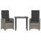 Ensemble à manger de jardin 3 pcs coussins gris résine tresséeCet ensemble de salle à manger de jardin est un excellent choix pour les repas en plein air ou pour vous détendre dans le jardin, dans l'arrière-cour ou sur la terrasse. Matériau durable : la résine tressée, également connue sous le nom de poly rotin, est un matériau synthétique solide et nécessitant peu d'entretien qui ressemble au rotin naturel. Il est léger, facile à nettoyer et couramment utilisé pour les meubles d'extérieur en raison de sa durabilité et de ses propriétés de résistance aux intempéries. Dossier réglable : ce siège de jardin est doté d'une poignée. Vous pouvez régler le dossier dans n'importe quelle position en tirant sur la poignée et le remettre rapidement dans sa position initiale. Expérience d'assise confortable : ce mobilier d'extérieur, doté de coussins épais, offre une expérience d'assise confortable. Housse amovible et lavable : ces coussins de siège sont dotés de housses amovibles pour un lavage et un entretien faciles. Les coussins de dossier ont un rabat à l'arrière pour une fixation facile aux dossiers. Dessus en verre : le dessus de la table d'extérieur est fabriqué en verre trempé solide et durable, ce qui le rend facile à nettoyer avec un chiffon humide et ajoute une touche d'élégance à votre espace extérieur. Bon à savoir : Pour que vos meubles d'extérieur restent beaux, nous vous recommandons de les protéger avec une housse imperméable. Maximum 110 kg par siège. Soyez conscient du risque de feux ouverts et d'autres sources de forte chaleur à proximité du produit.