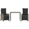Ensemble à manger de jardin 3 pcs coussins gris résine tresséeCet ensemble de salle à manger de jardin est un excellent choix pour les repas en plein air ou pour vous détendre dans le jardin, l'arrière-cour ou le patio. Matériau durable : la résine tressée, également connue sous le nom de poly rotin, est un matériau synthétique solide et nécessitant peu d'entretien qui ressemble au rotin naturel. Il est léger, facile à nettoyer et couramment utilisé pour les meubles d'extérieur en raison de sa durabilité et de ses propriétés de résistance aux intempéries. Dossier et repose-pied réglables : ce siège de jardin est doté d'une poignée. Vous pouvez régler le dossier et le repose-pied dans n'importe quelle position en tirant sur la poignée, et les remettre rapidement dans leur position initiale. Dessus en verre : le dessus de la table d'extérieur est fabriqué en verre trempé solide et durable, ce qui le rend facile à nettoyer avec un chiffon humide et ajoute une touche d'élégance à votre espace extérieur. Expérience d'assise confortable : ce mobilier d'extérieur, doté de coussins épais, offre une expérience d'assise confortable. Housse amovible et lavable : ces coussins de siège sont dotés de housses amovibles pour un lavage et un entretien faciles. Bon à savoir : Pour que vos meubles d'extérieur restent beaux, nous vous recommandons de les protéger avec une housse imperméable. Maximum 110 kg par siège. Soyez conscient du risque de feu ouvert et d'autres sources de forte chaleur à proximité de l'appareil.