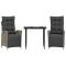 Ensemble à manger de jardin 3 pcs coussins gris résine tresséeCet ensemble de salle à manger de jardin est un excellent choix pour les repas en plein air ou pour vous détendre dans le jardin, l'arrière-cour ou le patio. Matériau durable : la résine tressée, également connue sous le nom de poly rotin, est un matériau synthétique solide et nécessitant peu d'entretien qui ressemble au rotin naturel. Il est léger, facile à nettoyer et couramment utilisé pour les meubles d'extérieur en raison de sa durabilité et de ses propriétés de résistance aux intempéries. Dossier et repose-pied réglables : ce siège de jardin est doté d'une poignée. Vous pouvez régler le dossier et le repose-pied dans n'importe quelle position en tirant sur la poignée, et les remettre rapidement dans leur position initiale. Expérience d'assise confortable : ce mobilier d'extérieur, doté de coussins épais, offre une expérience d'assise confortable. Housse amovible et lavable : ces coussins de siège sont dotés de housses amovibles pour un lavage et un entretien faciles. Les coussins de dossier ont un rabat à l'arrière pour une fixation facile aux dossiers. Dessus en verre : le dessus de la table d'extérieur est fabriqué en verre trempé solide et durable, ce qui le rend facile à nettoyer avec un chiffon humide et ajoute une touche d'élégance à votre espace extérieur. Bon à savoir : Pour que vos meubles d'extérieur restent beaux, nous vous recommandons de les protéger avec une housse imperméable. Maximum 110 kg par siège. Soyez conscient du risque de feu ouvert et d'autres sources de forte chaleur à proximité de l'appareil.